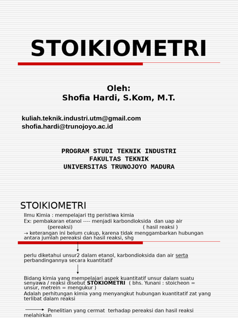 Adalah perhitungan kimia yang menyangkut hubungan kuantitatif zat yang
