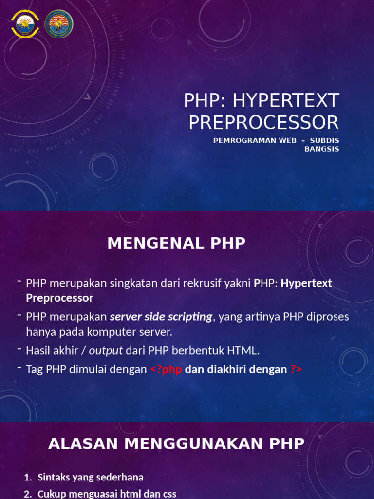 - PHP merupakan server side scripting, yang artinya PHP diproses