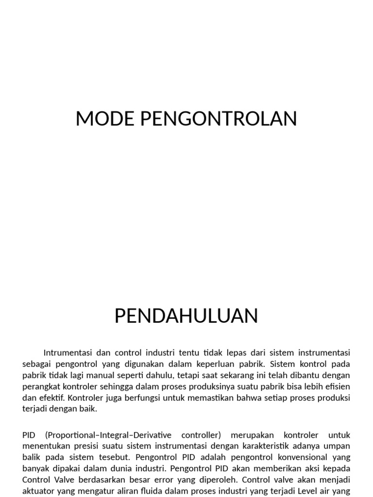 banyak dipakai dalam dunia industri. Pengontrol PID akan memberikan aksi kepada