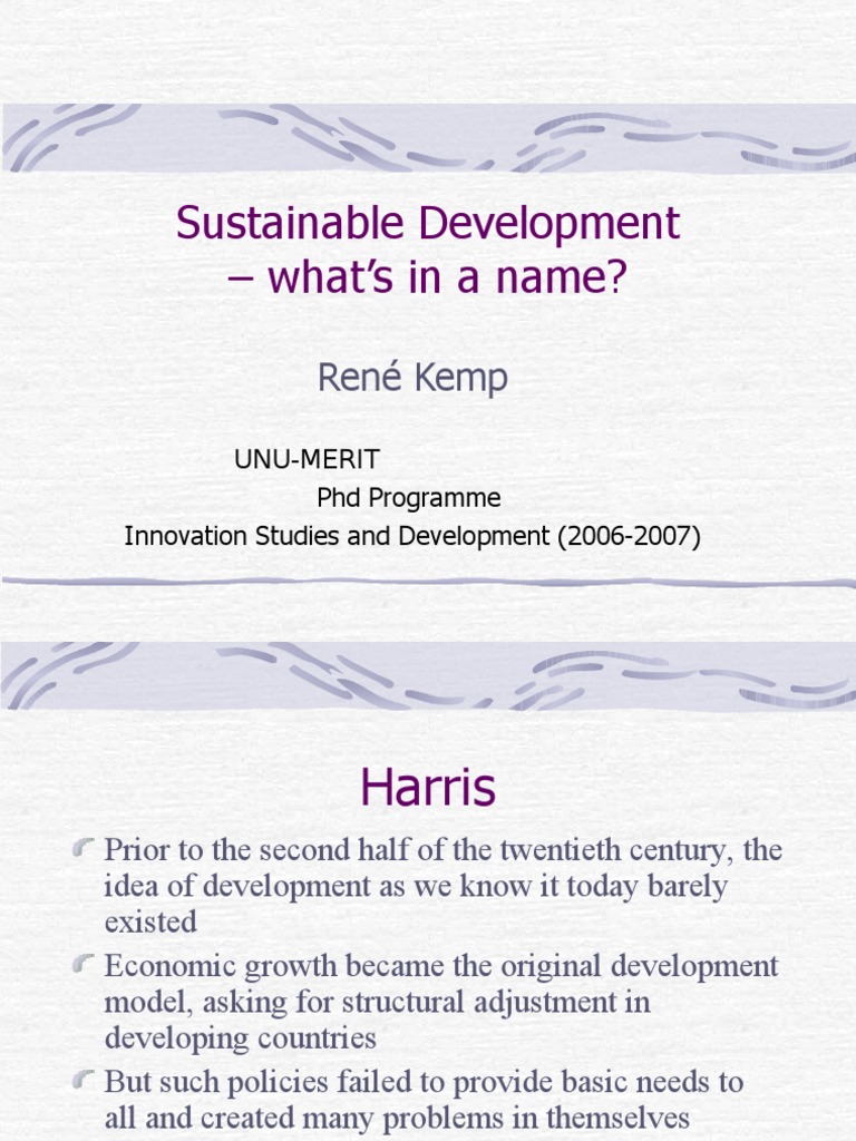 Prior to the second half of the twentieth century, the idea of development as we know it today barely existed Economic growth became the original development model, asking for structural adjustment in developing countries But such policies failed to provide basic needs to all and created many problems in themselves This led to the notion of SD
