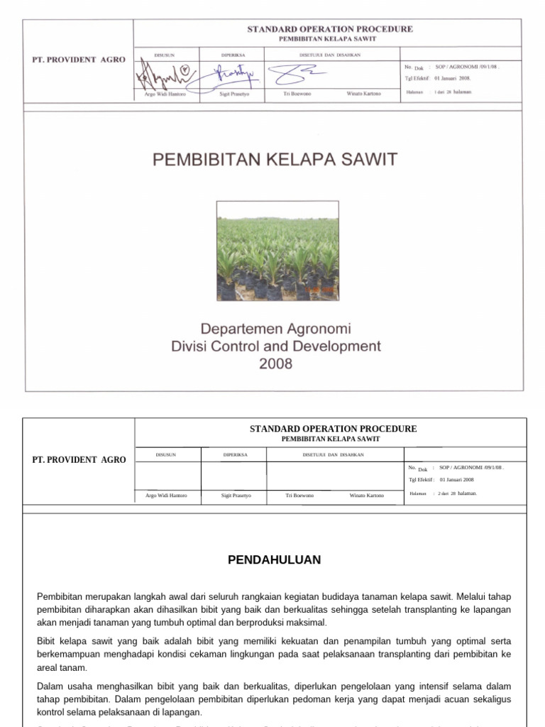 Standard Operation Procedure Pembibitan Kelapa Sawit ini disusun sebagai pedoman dalam pelaksanaan