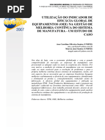 Utilização Do Indicador de Eficácia Global de Equipamentos (Oee) Na Gestão de Melhoria Contínua Do Sistema de Manufatura - Um Estudo de Caso
