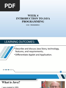 CC102 Week-4 Lesson-Introduction To Java ProgrammingPDFCC102 Week-4 Lesson-Introduction To Java ProgrammingDitambahkan oleh Tred Moon100% (2)function cn(e,t){var n=e+t;return n<=0?0:Math.round(e/n*100)}% menganggap dokumen ini bermanfaatSimpan CC102 Week-4 Lesson-Introduction To Java Programming untuk nanti
